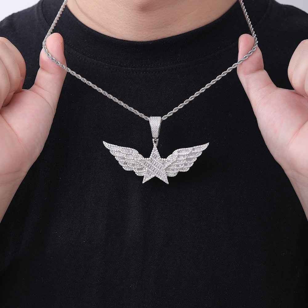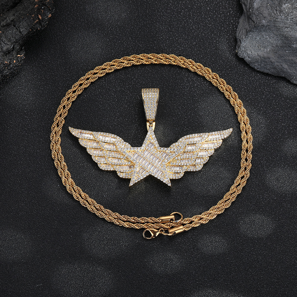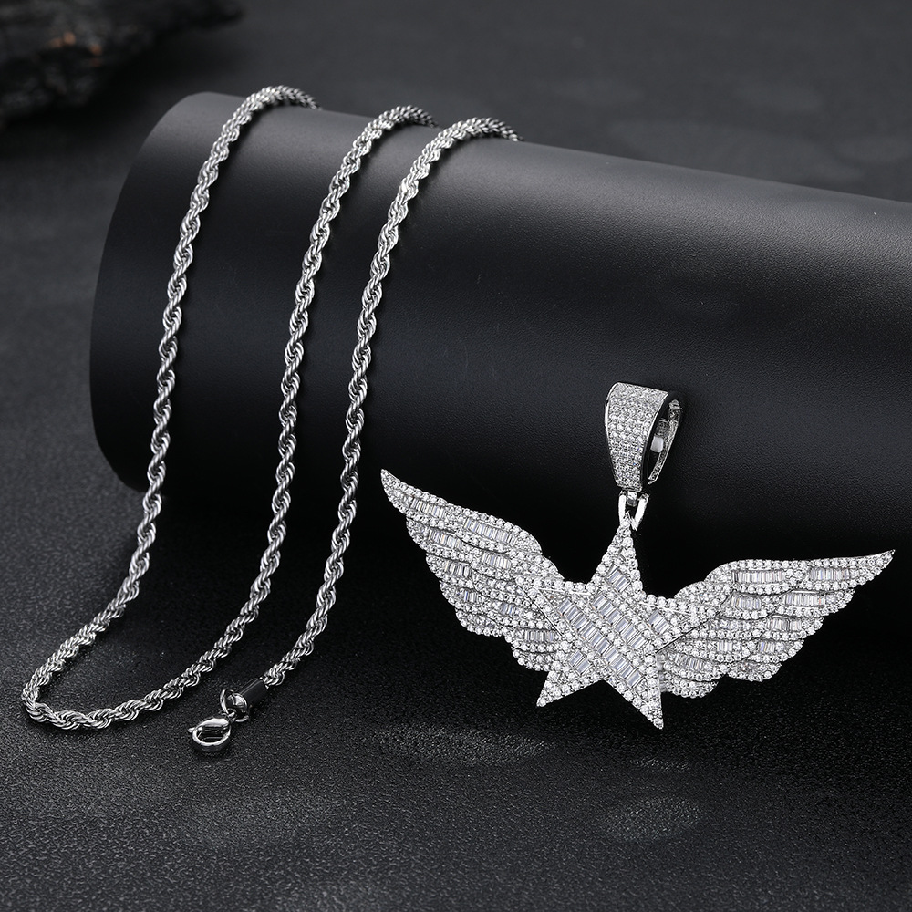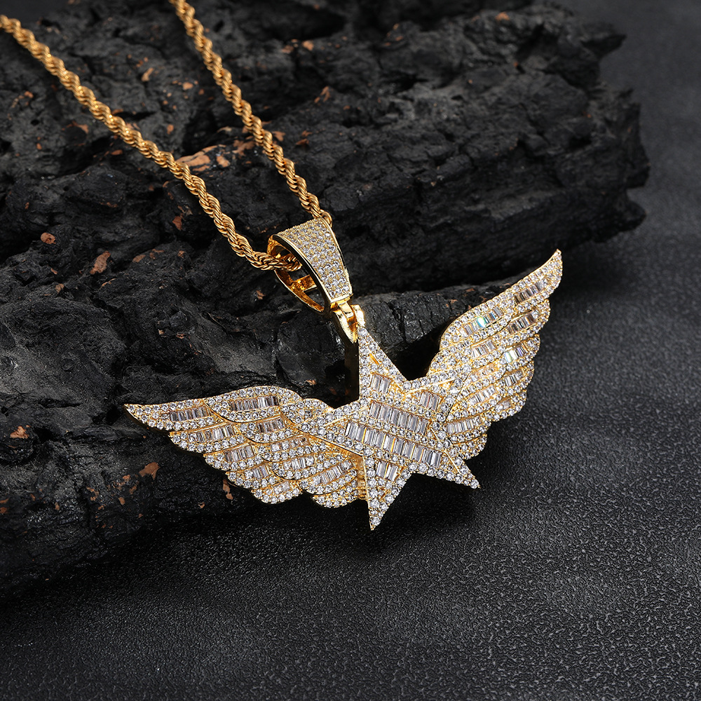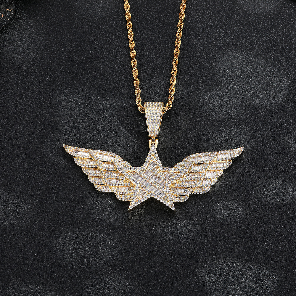 AliExpress hot-selling products, Star Wings men's and women's hip-hop pendants, copper micro-inlaid zircon high-quality pendants, cross-border supply