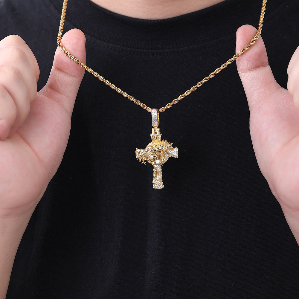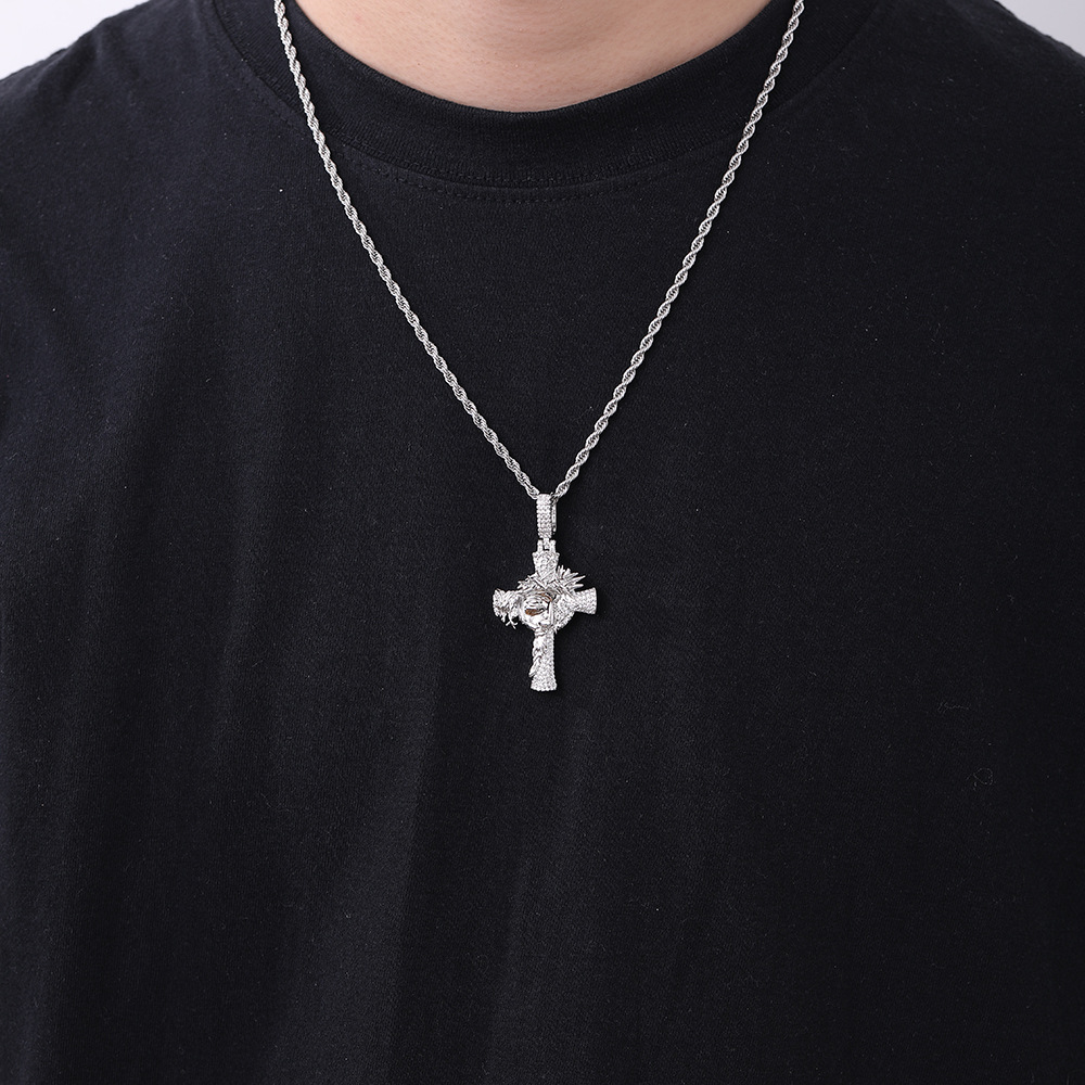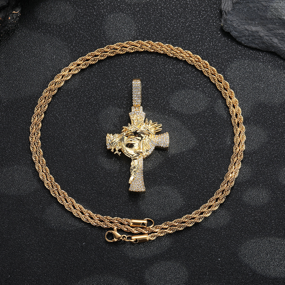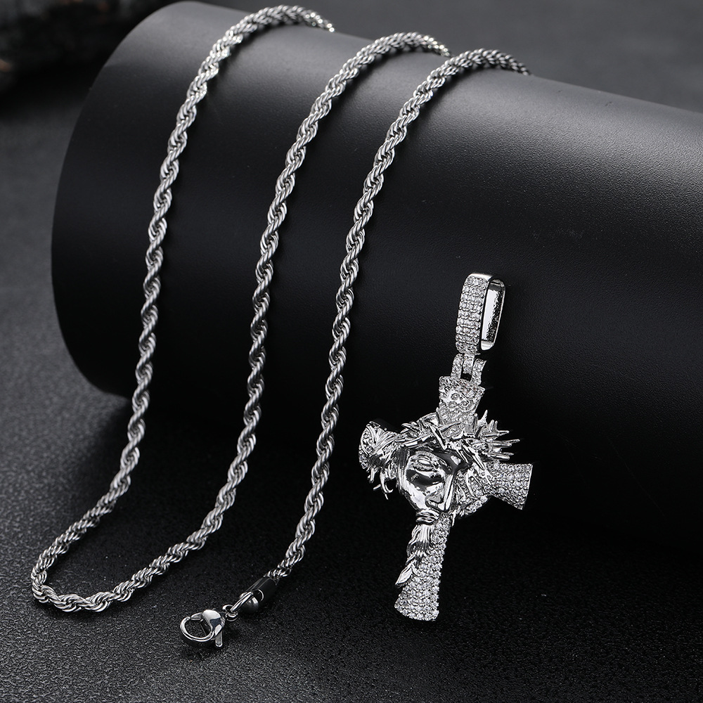 Crown of Thorns Micro-set Zircon Pendant Men's Cross Trend Fashion Pendant Necklace