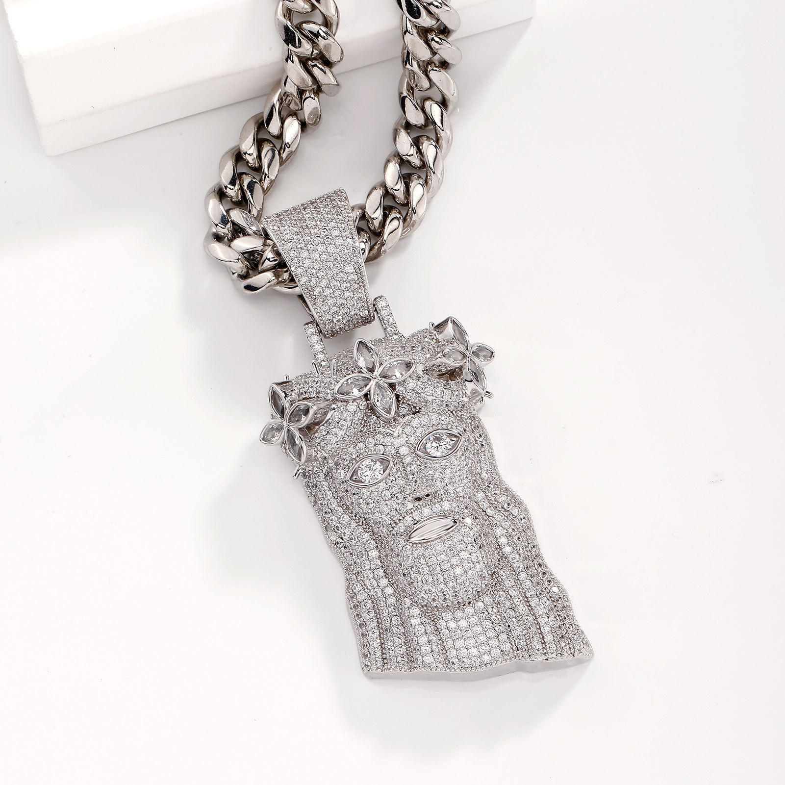Europe, America, Amazon retro old man pendant full of copper zir*****ld man head pendant jewelry personalized fashion Cuban necklace