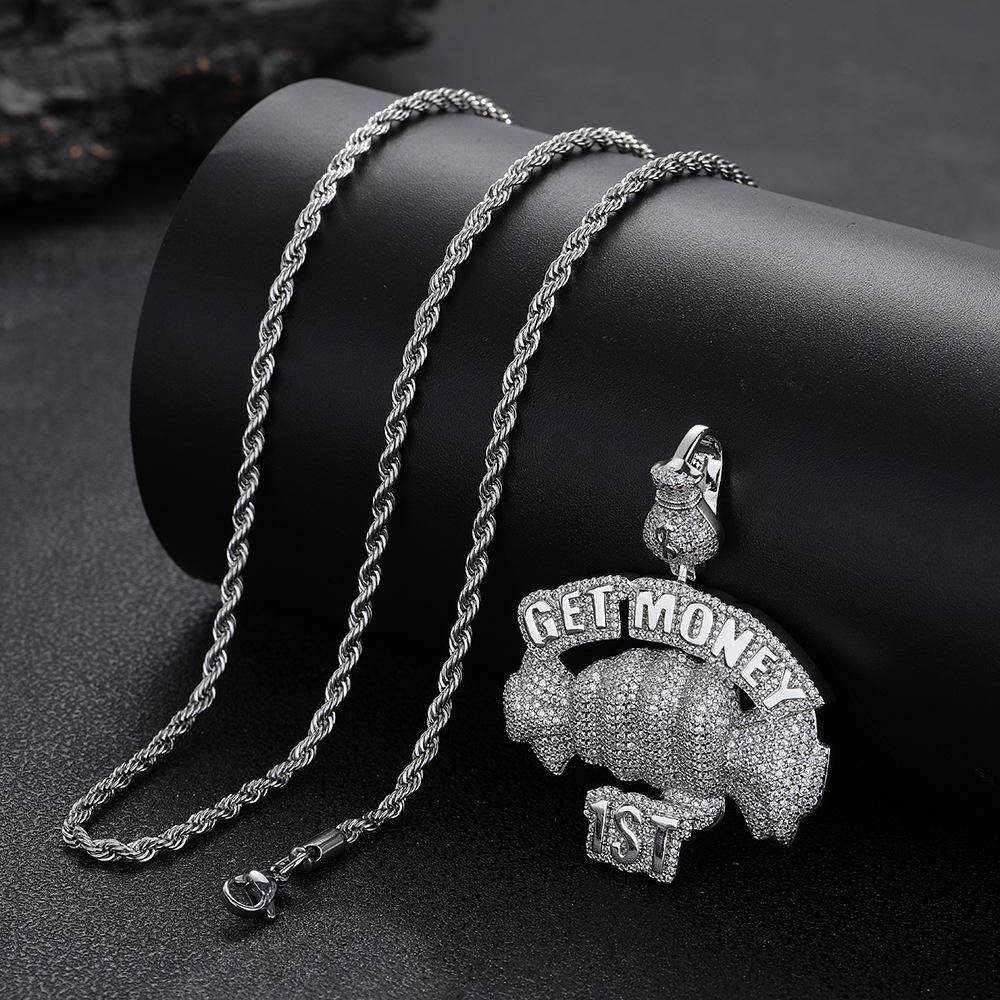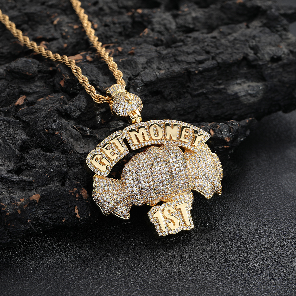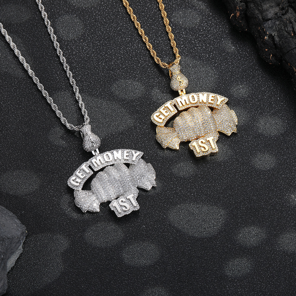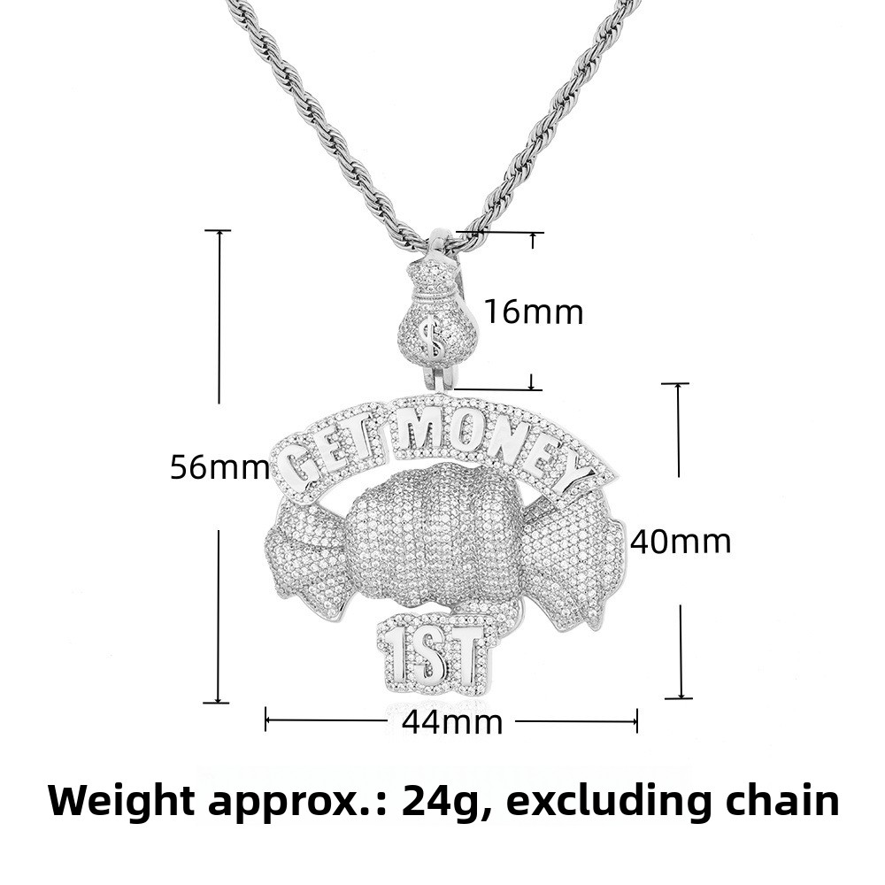 European and American cross-border hip hop Getmoney fist pendant personalized copper micro-zircon fashion trend accessories