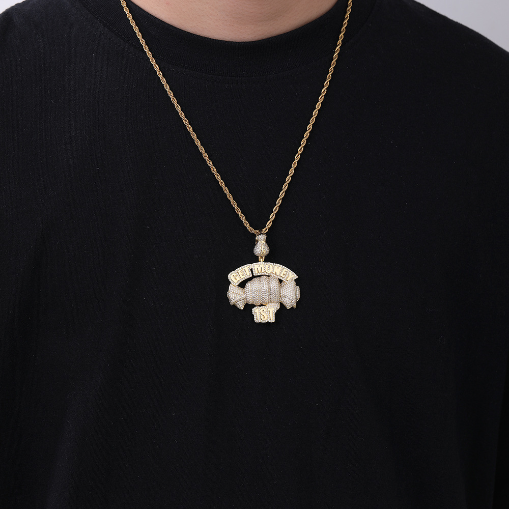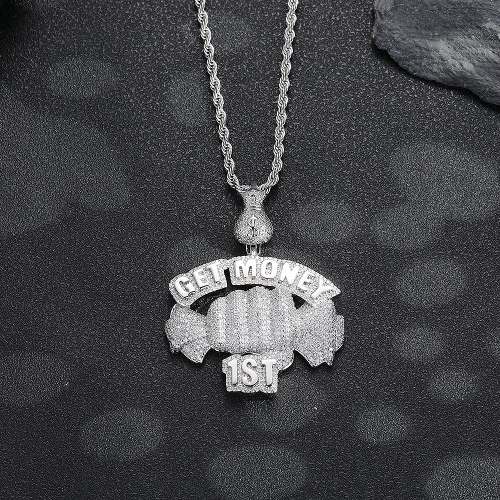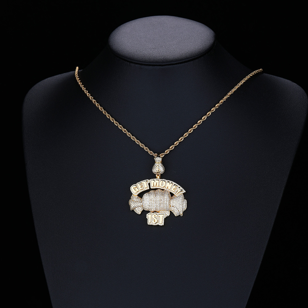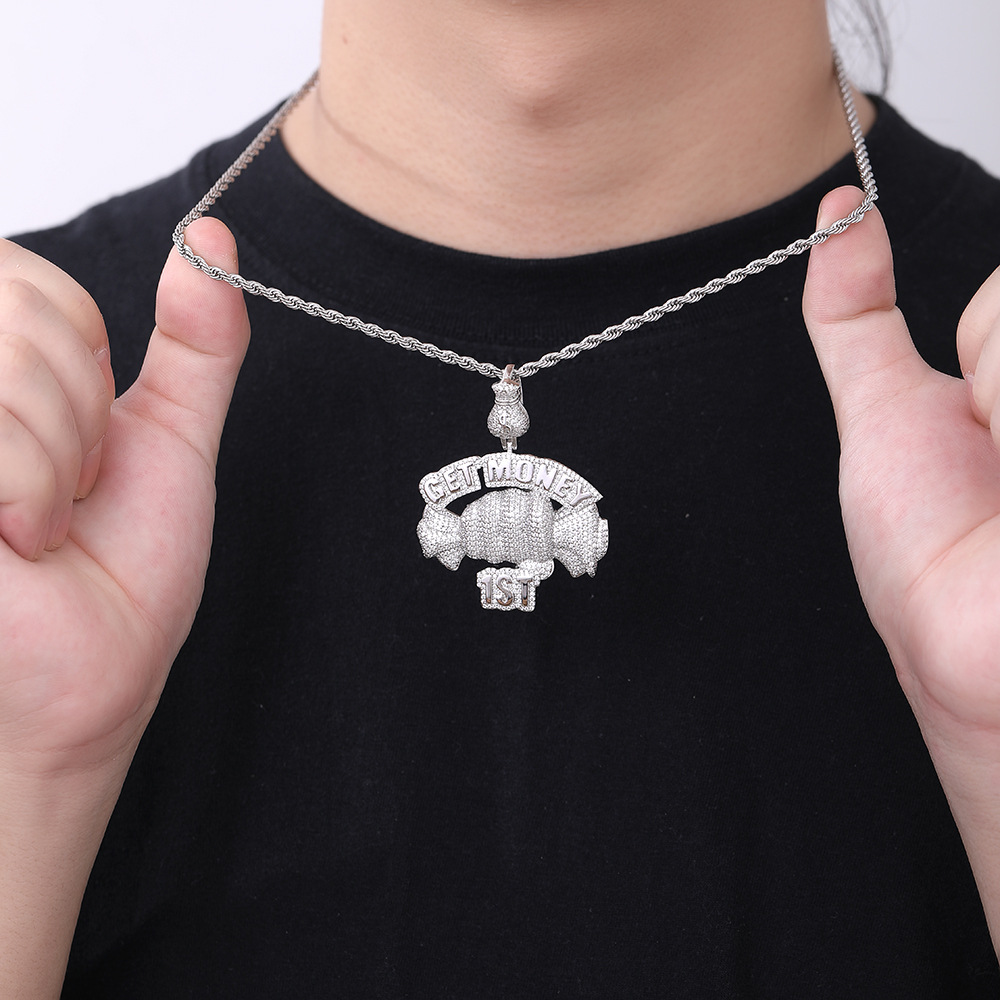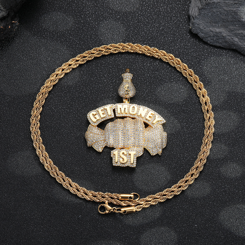European and American cross-border hip hop Getmoney fist pendant personalized copper micro-zircon fashion trend accessories