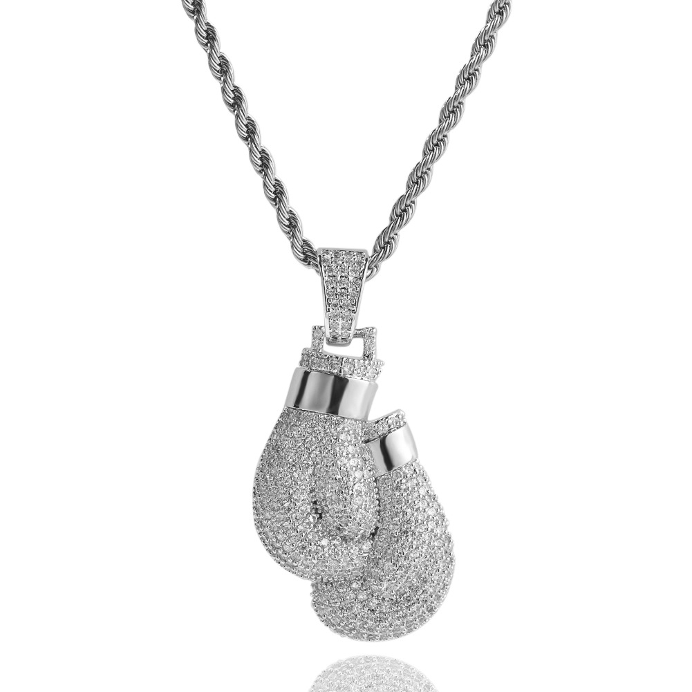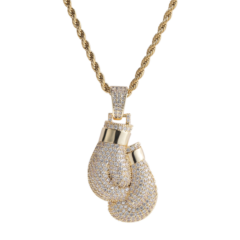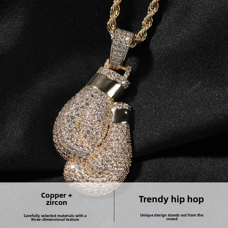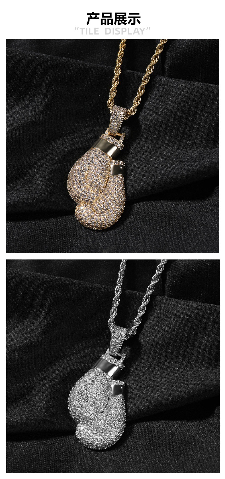 European and American cross-border hot-selling personalized boxing gloves pendant copper inlaid zircon creative hip-hop street trendy brand necklace