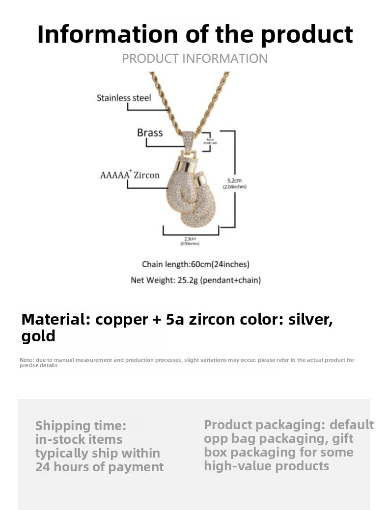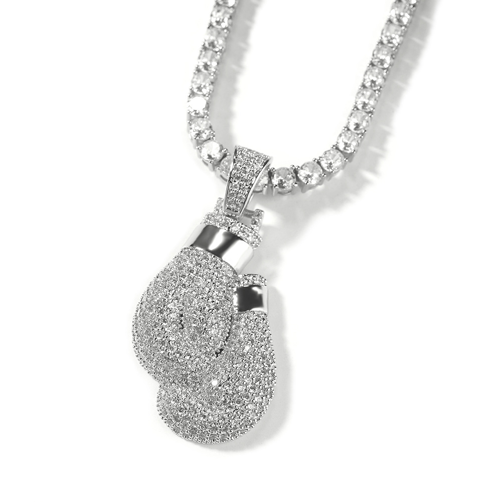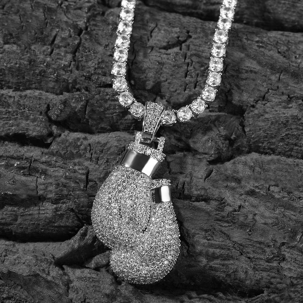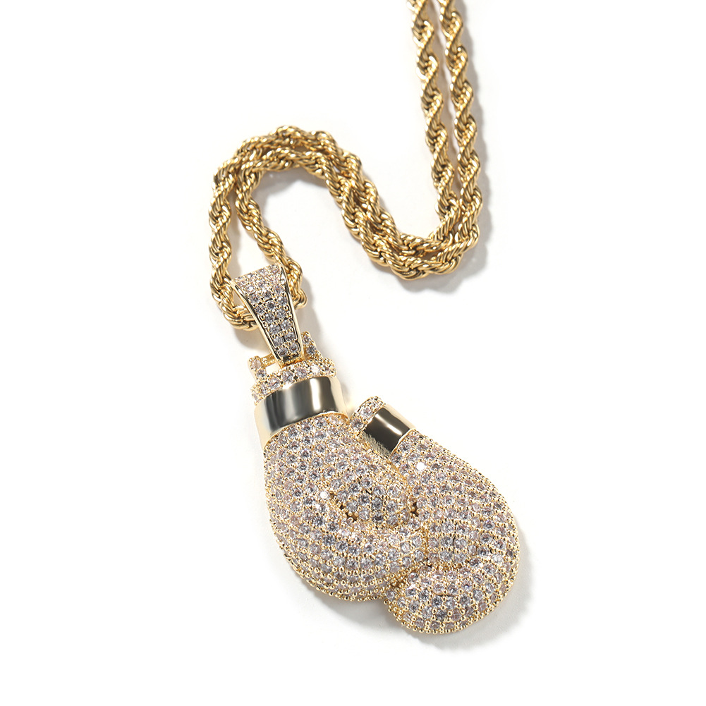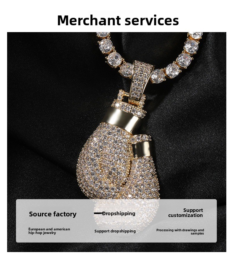 European and American cross-border hot-selling personalized boxing gloves pendant copper inlaid zircon creative hip-hop street trendy brand necklace