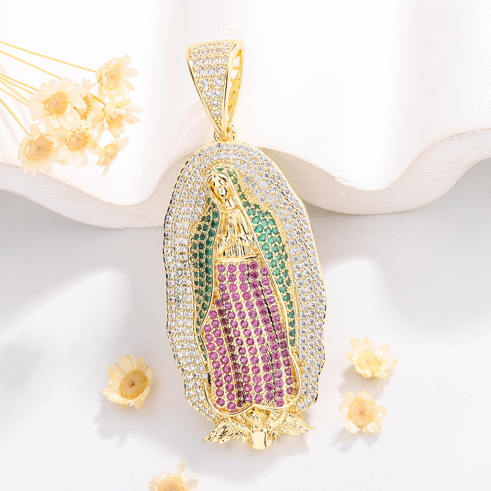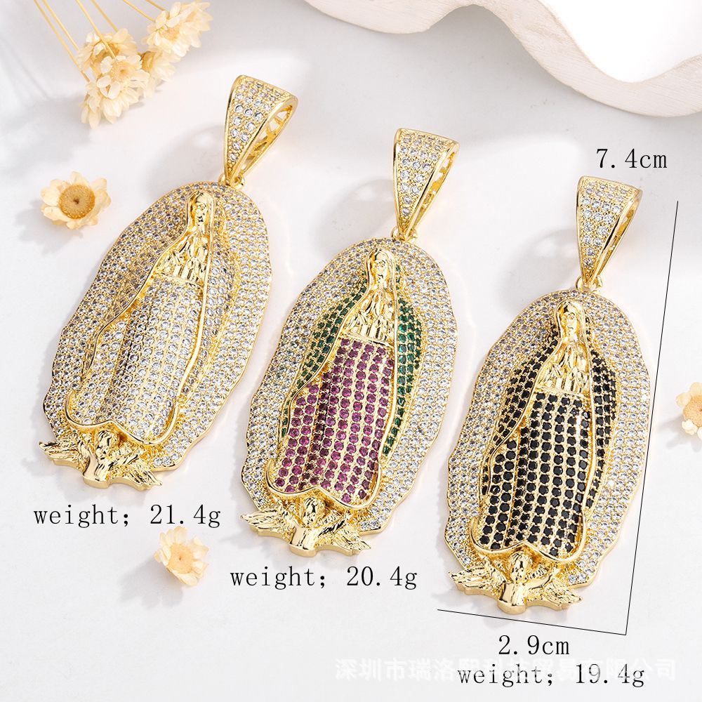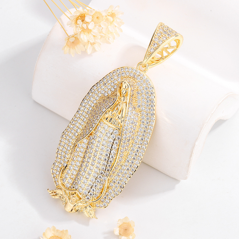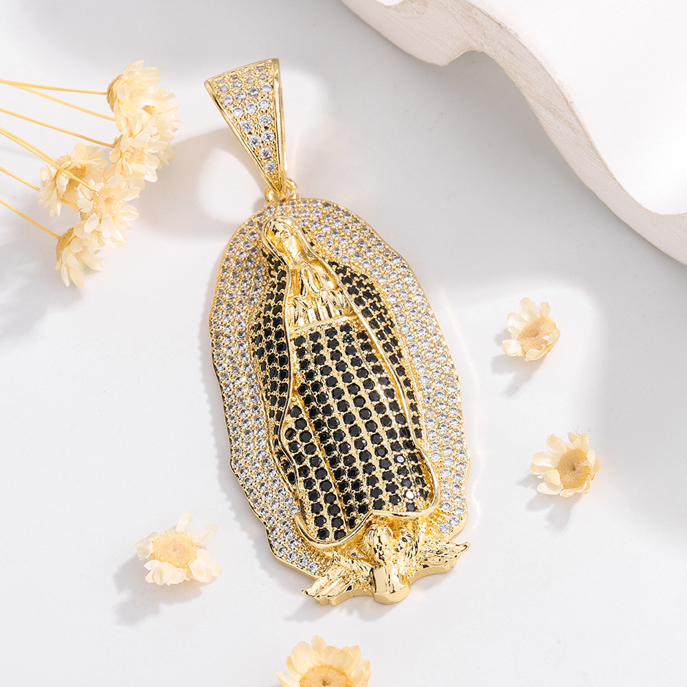 European and American cross-border personality religion Virgin Mary studded with diamonds hip-hop hippo large necklace pendant jewelry