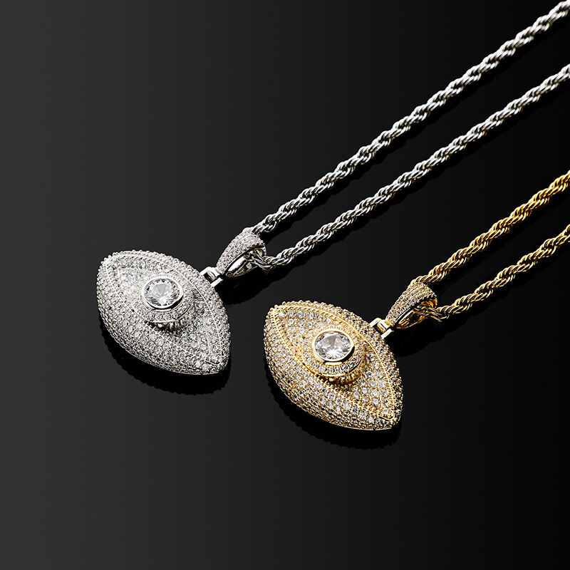 European and American cross-border TEMU Devil's Eye three-dimensional pendant micro-inlaid copper zircon hipster men's twist necklace wholesale
