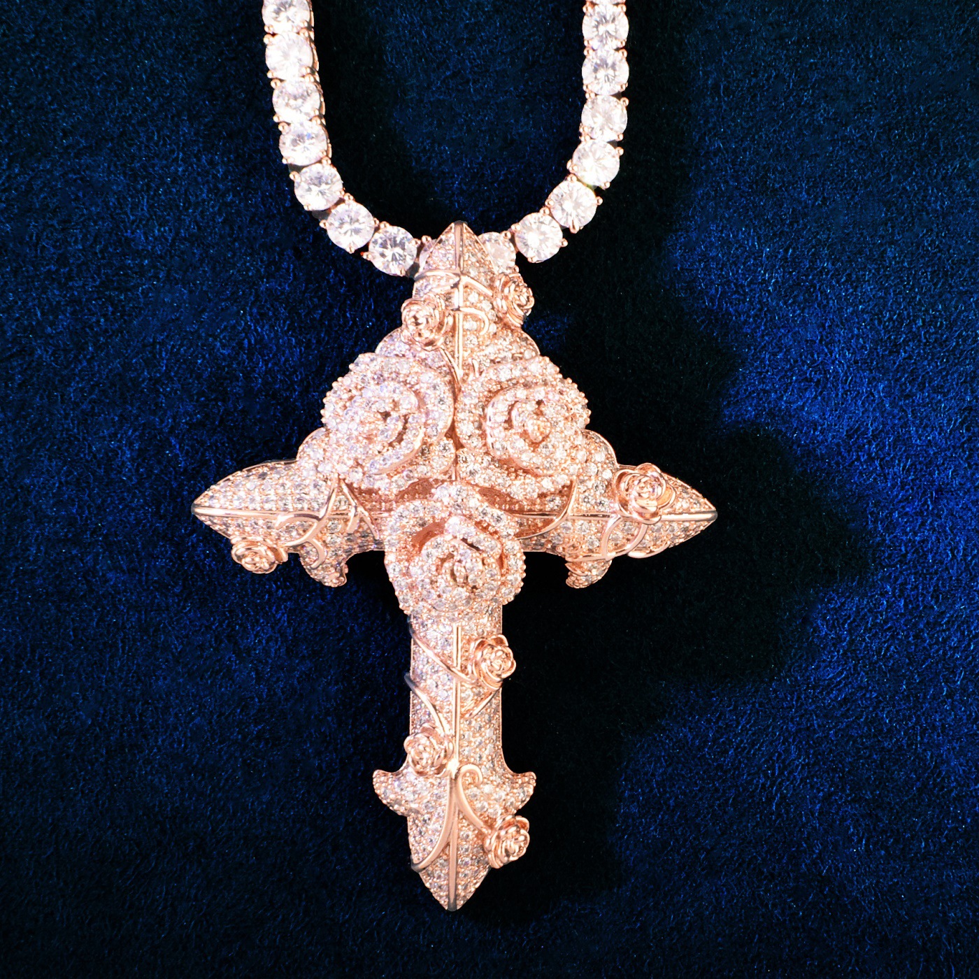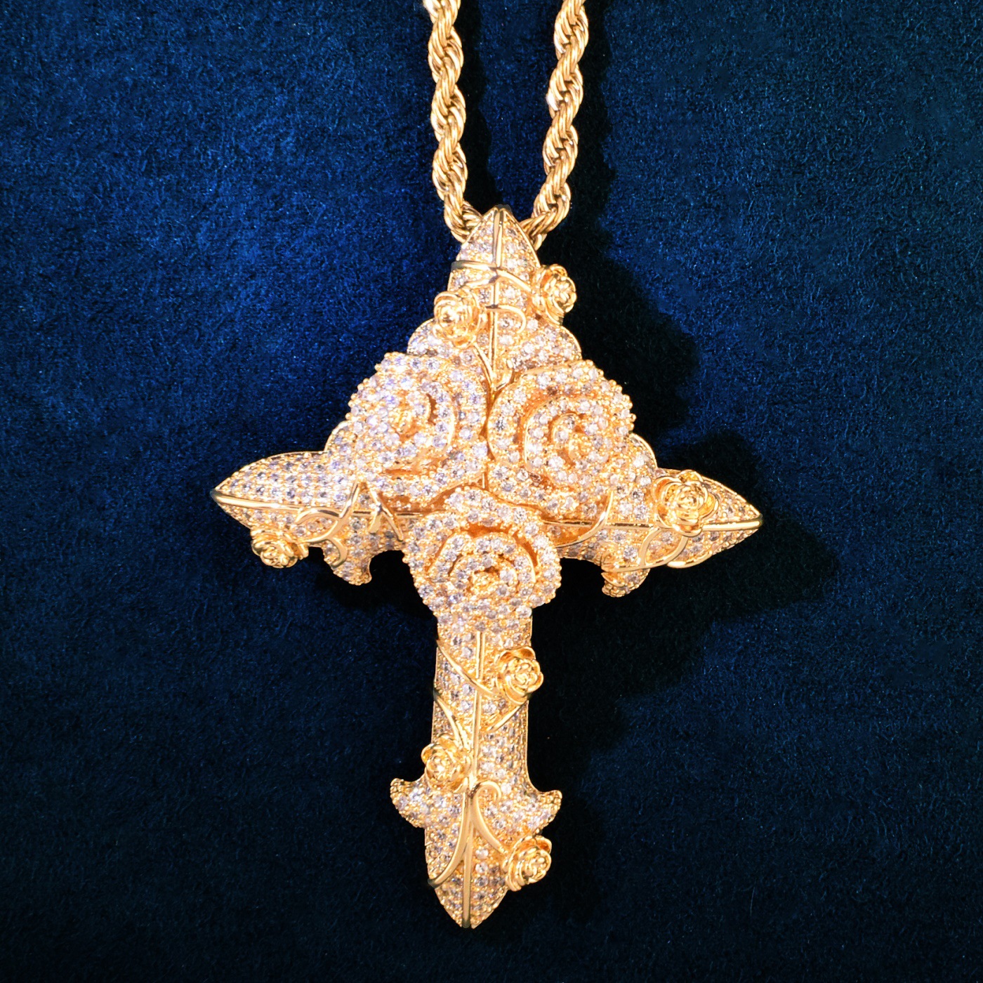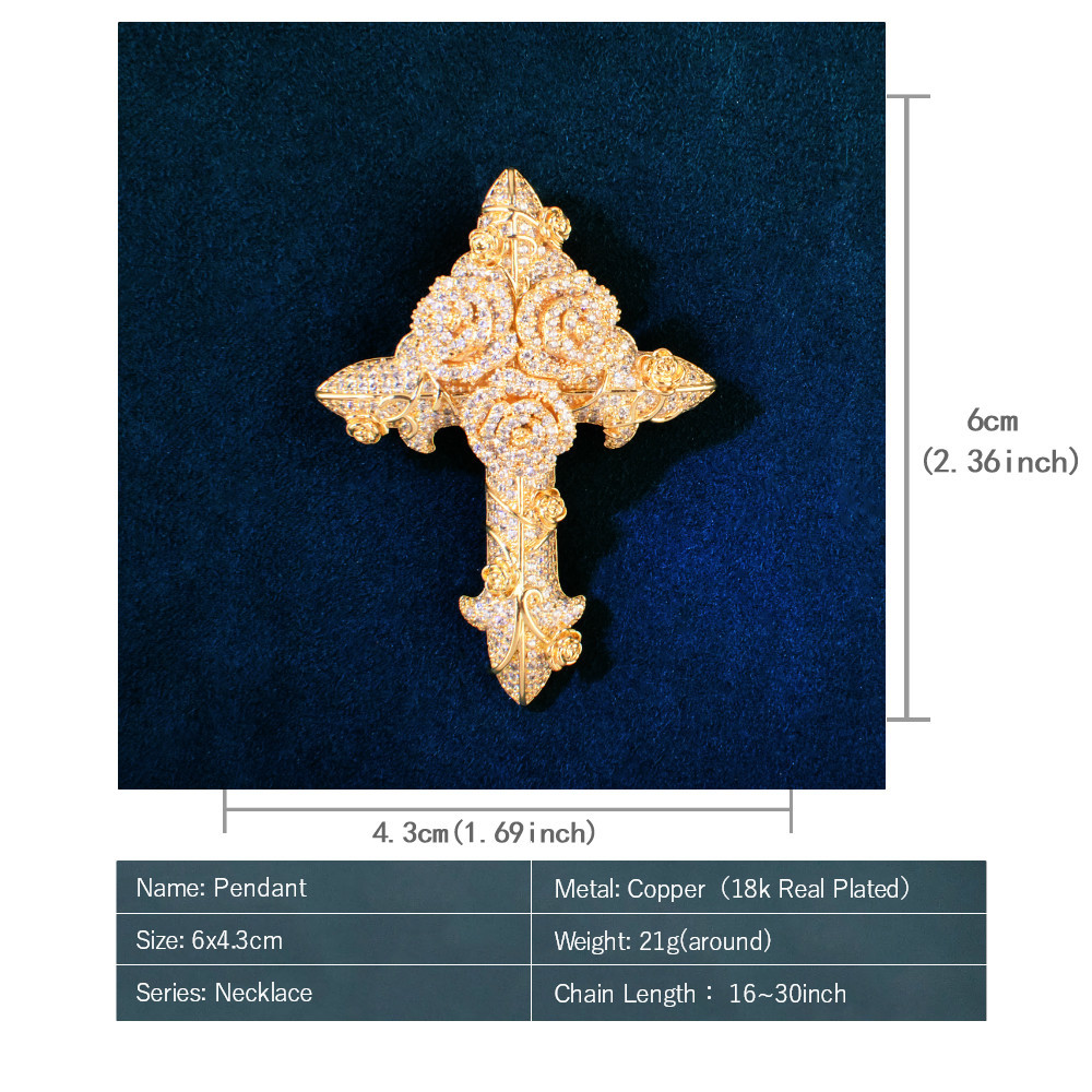 Hip-hop trendy brand ins wind rose cross zircon pendant twist chain necklace versatile couple accessories for men and women