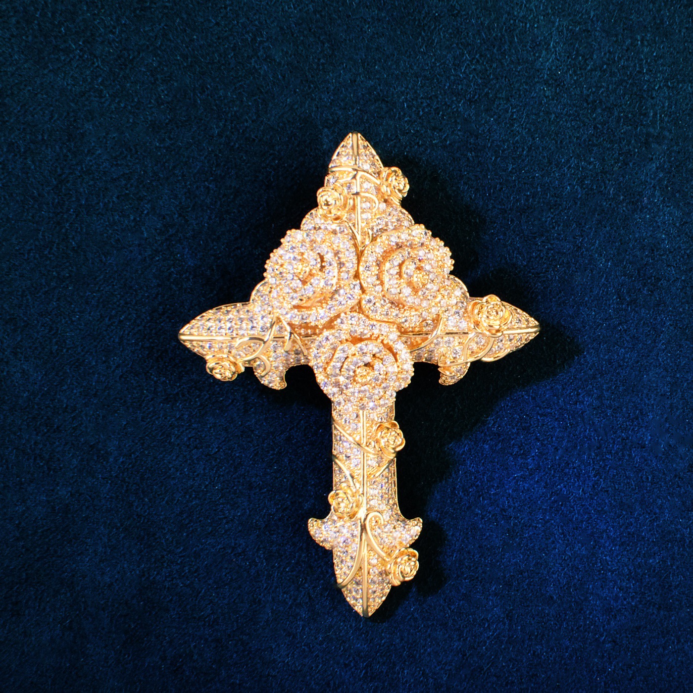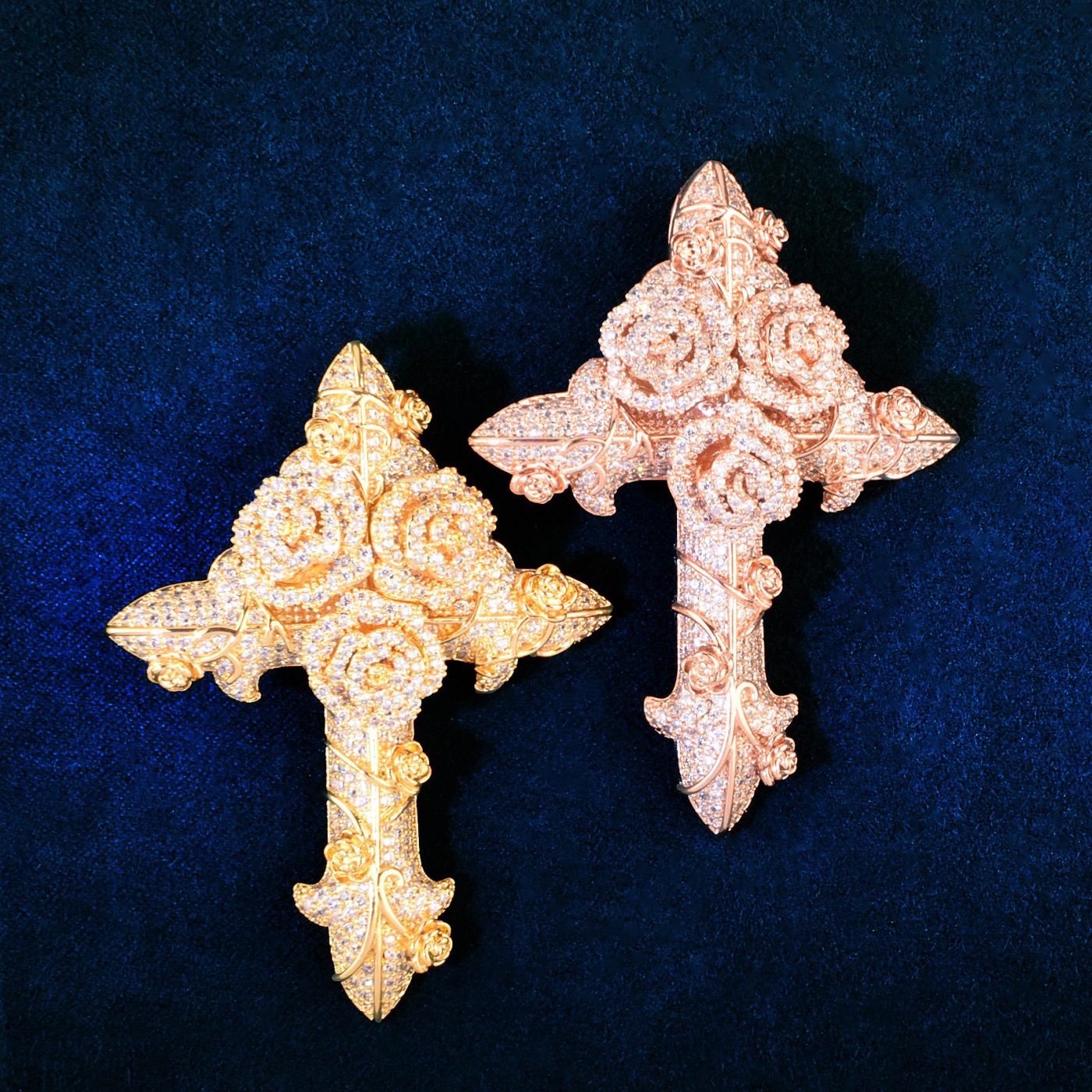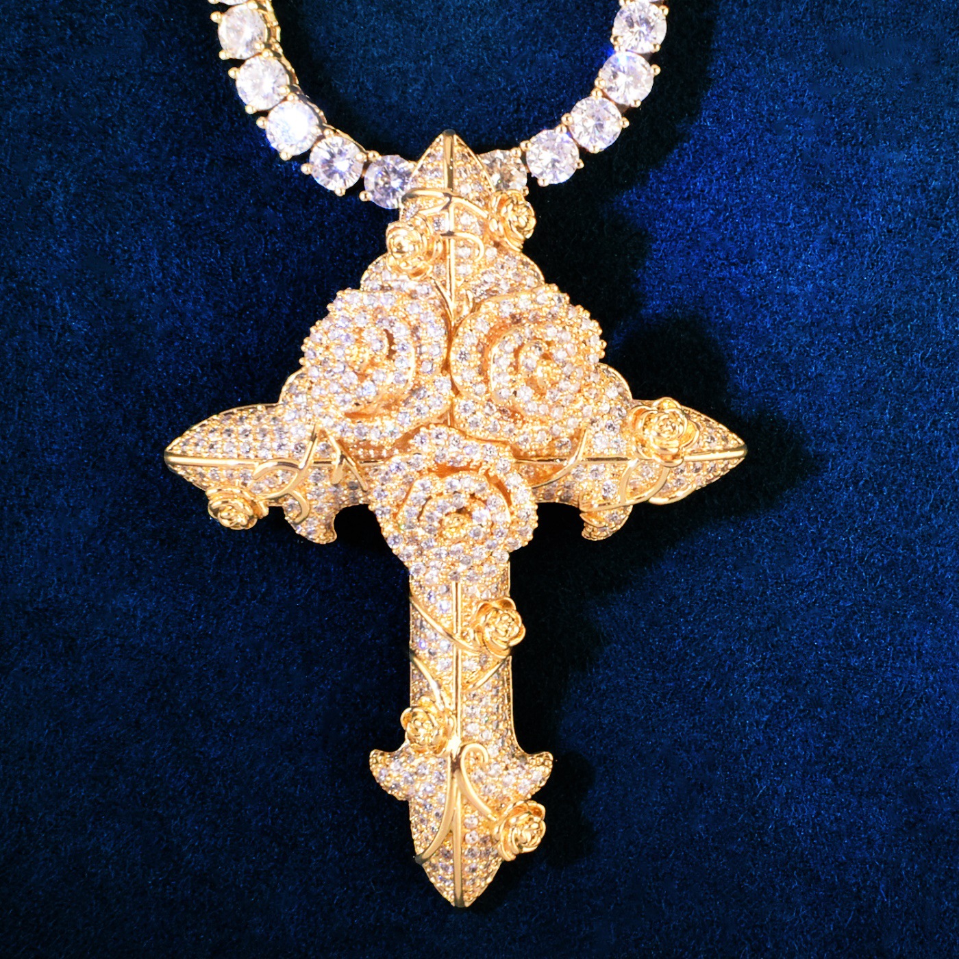 Hip-hop trendy brand ins wind rose cross zircon pendant twist chain necklace versatile couple accessories for men and women