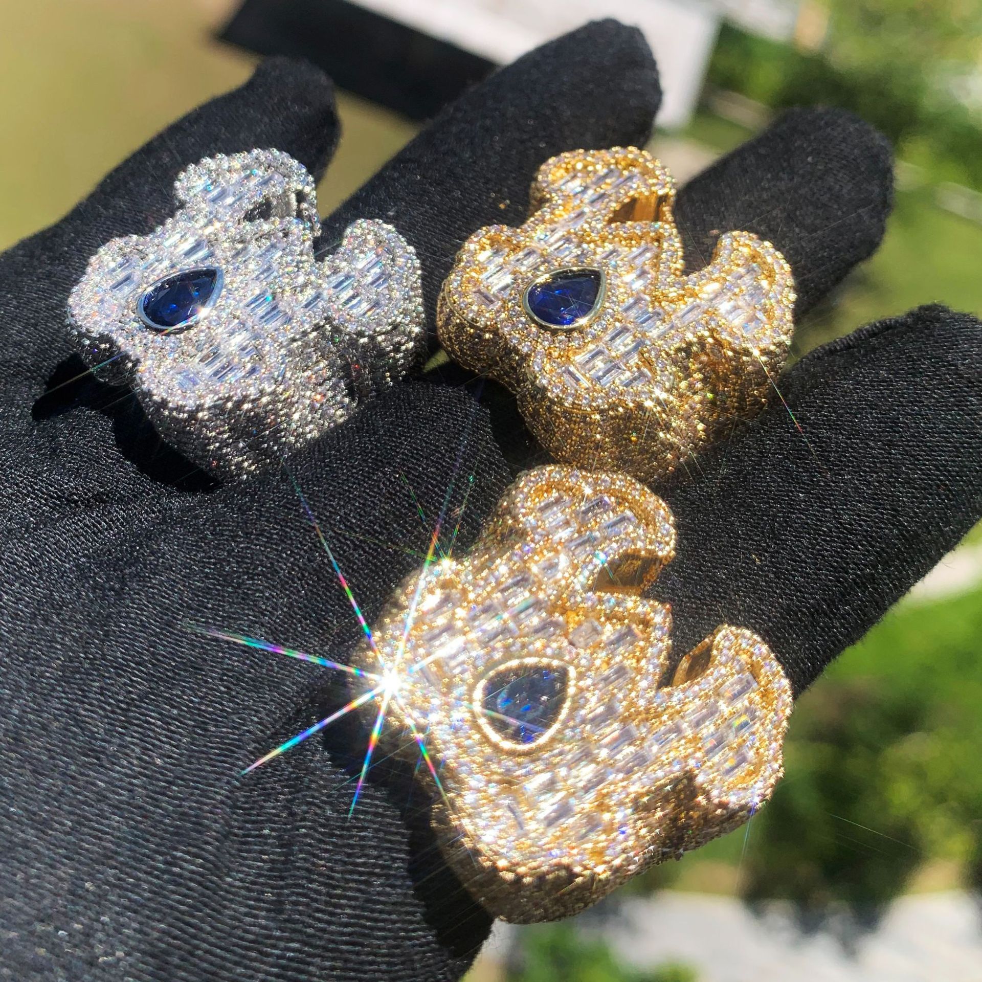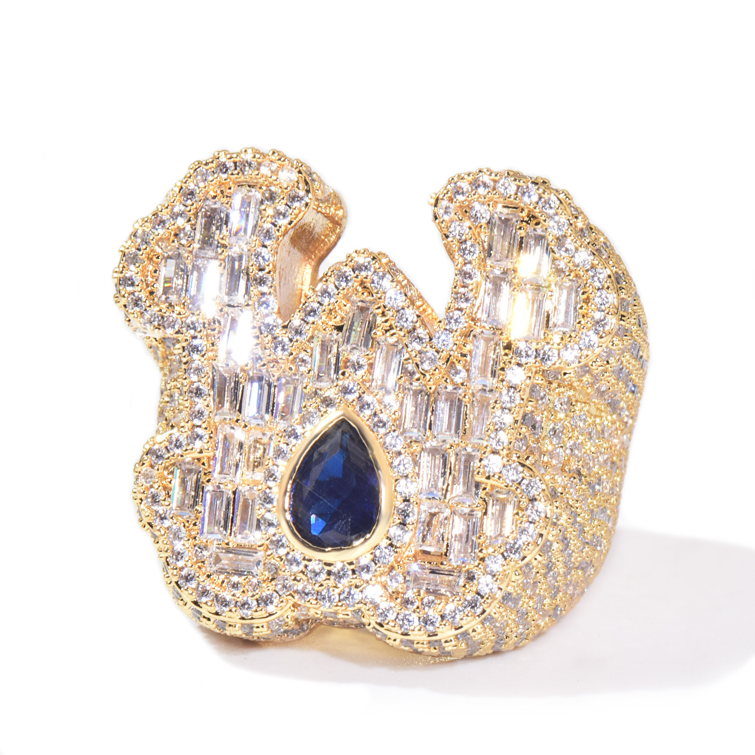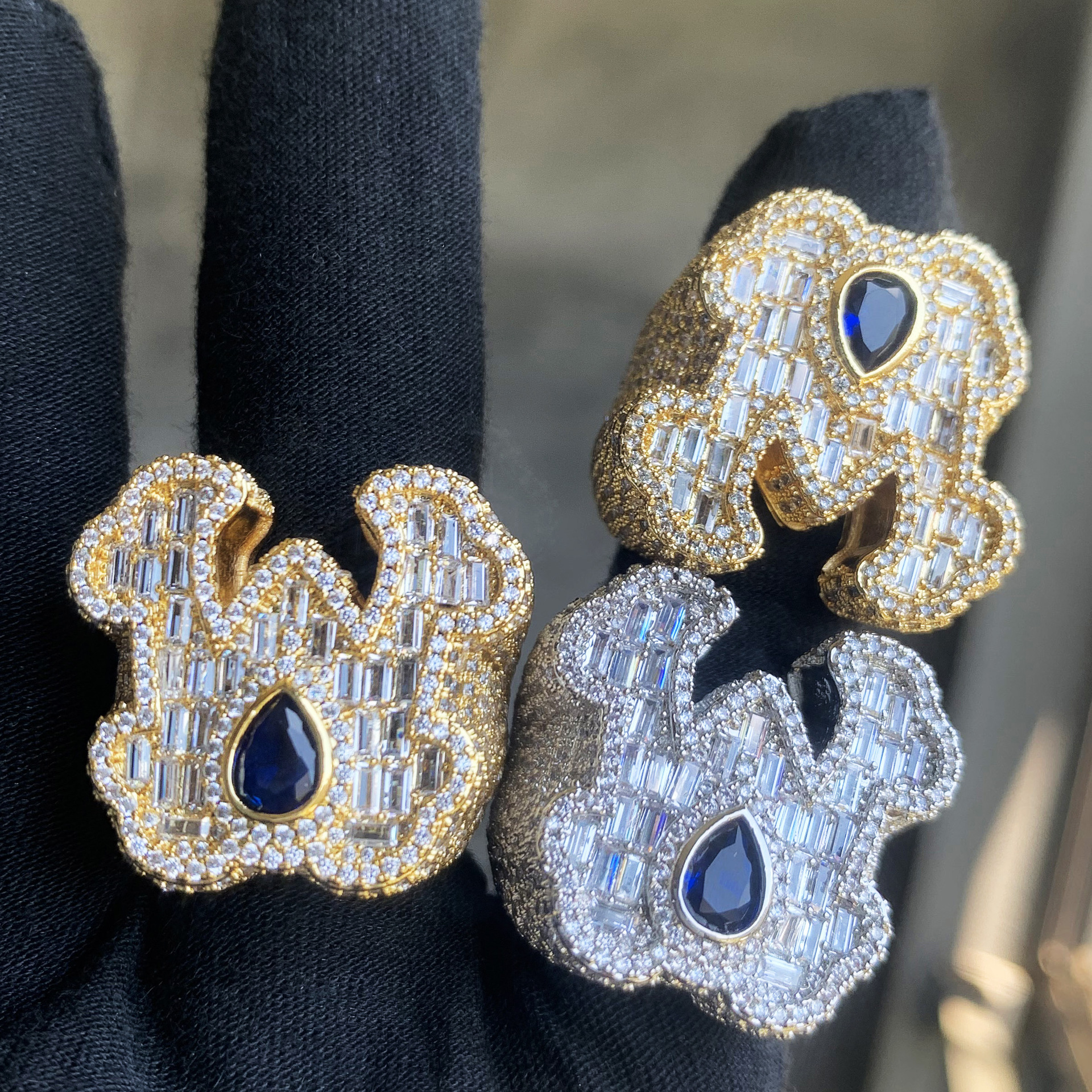 Listen to Jie European and American hip hop copper inlaid T square zircon ring men's personality fashion trend blue water drop letter ring