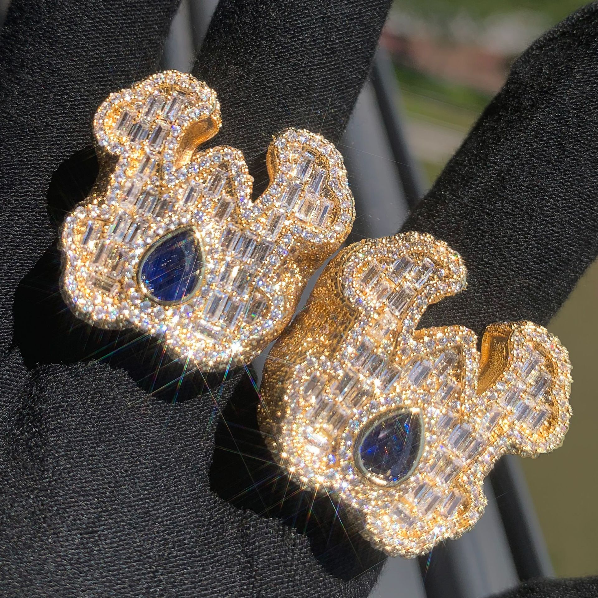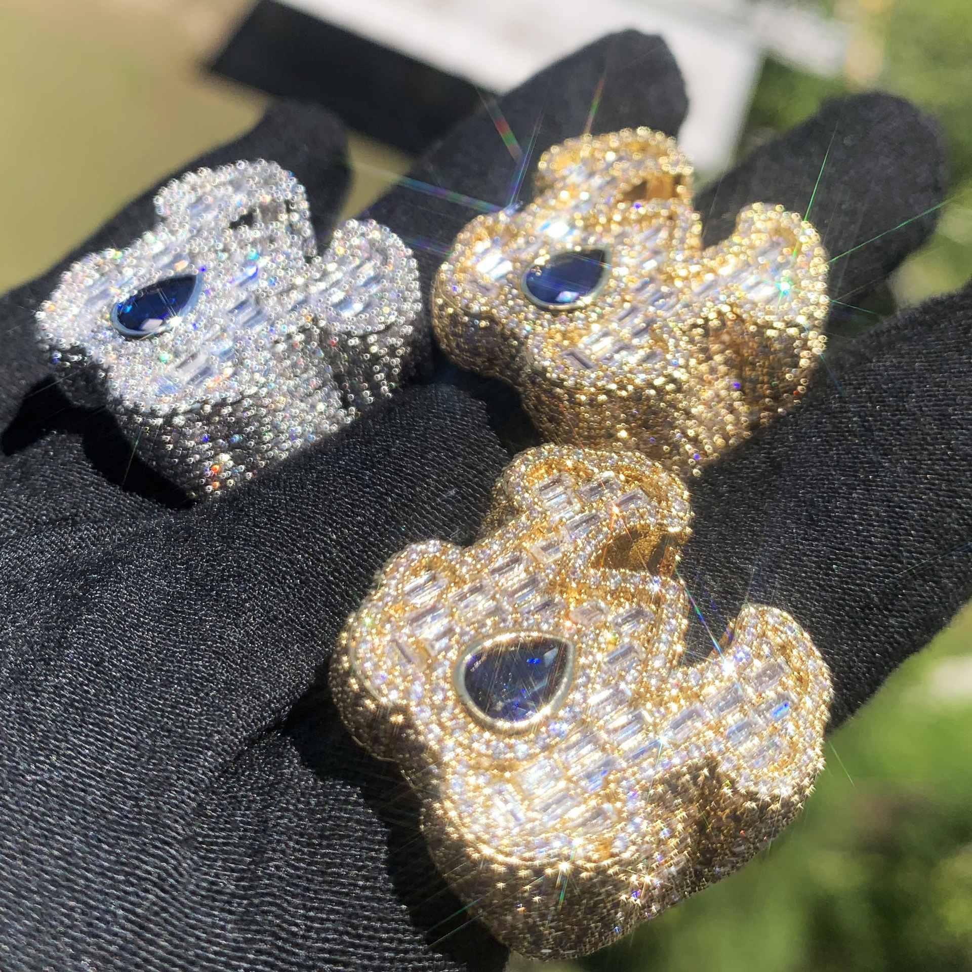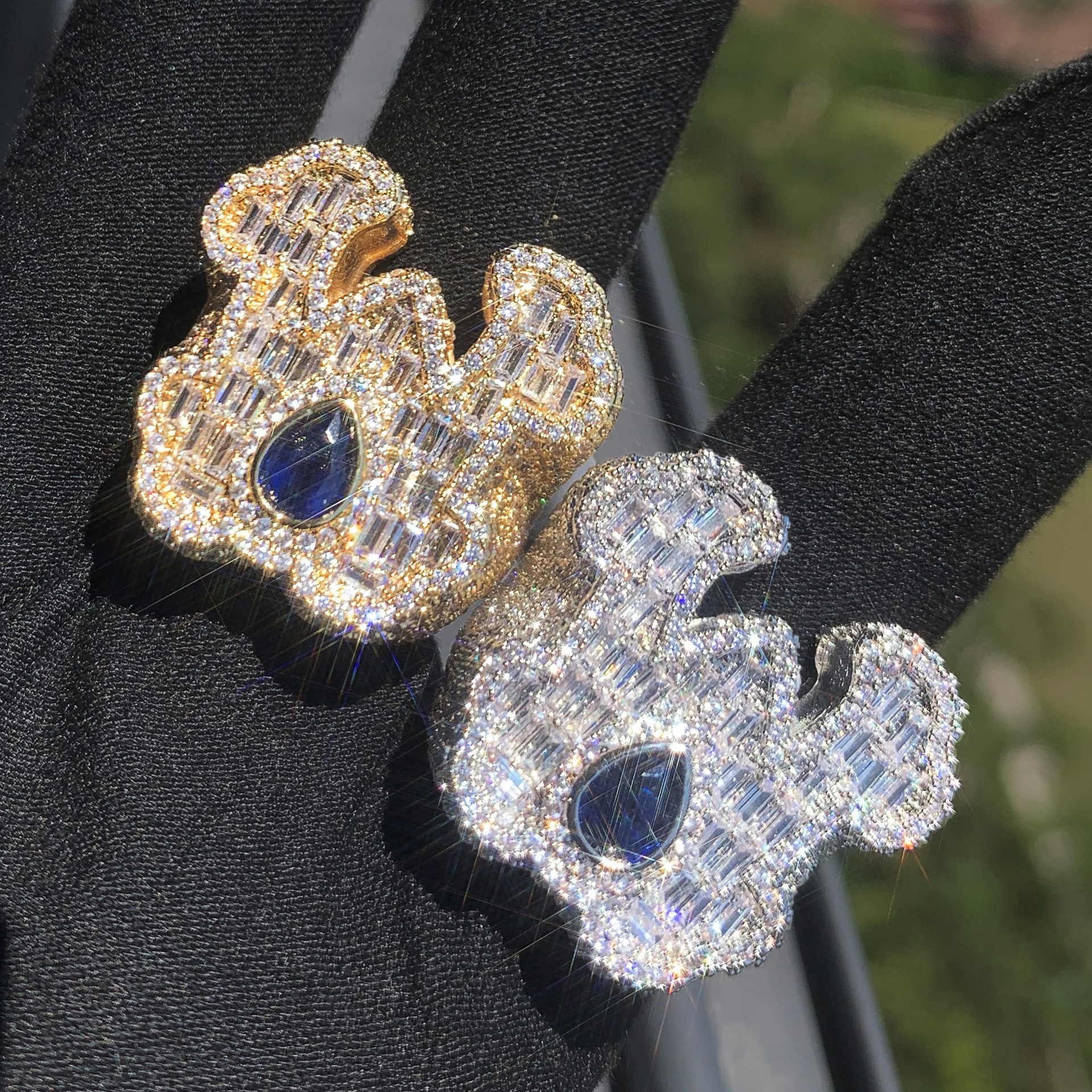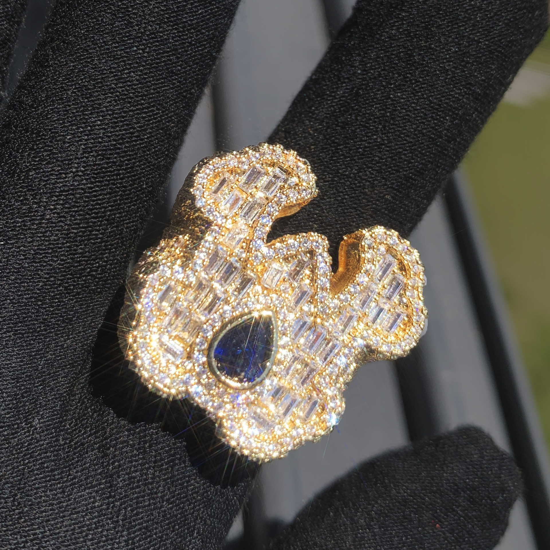 Listen to Jie European and American hip hop copper inlaid T square zircon ring men's personality fashion trend blue water drop letter ring